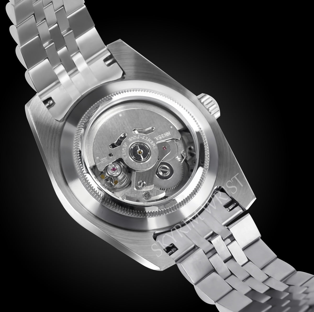 Powered by the Seiko NH35 automatic movement, it delivers precision and reliability that true collectors respect — hackable, hand-windable, and built for accuracy. Beneath the sapphire crystal, a cyclops magnifier ensures clear date visibility, while C3 luminous hands keep time legible through every hour.