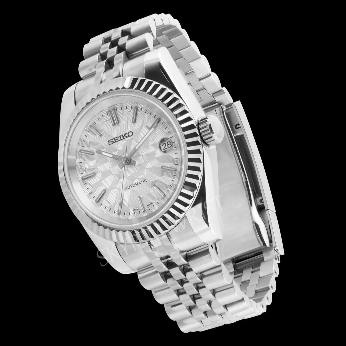 Classic form, modern craft — the Mod Datejust Reimagined captures the essence of timeless design, reshaped through the hands of modern artisans. Its 39 mm case, carved from 904L stainless steel, reflects light with quiet confidence, while the fluted bezel offers a refined nod to heritage without imitation.