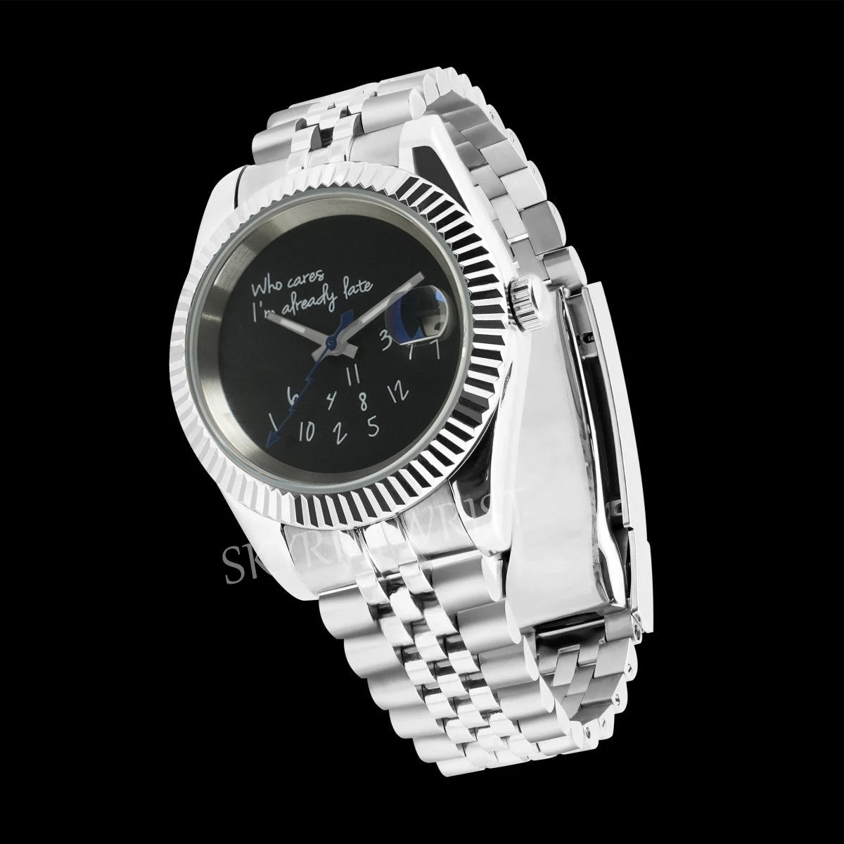 Classic form, modern craft — the Mod Datejust Reimagined captures the essence of timeless design, reshaped through the hands of modern artisans. Its 39 mm case, carved from 904L stainless steel, reflects light with quiet confidence, while the fluted bezel offers a refined nod to heritage without imitation.