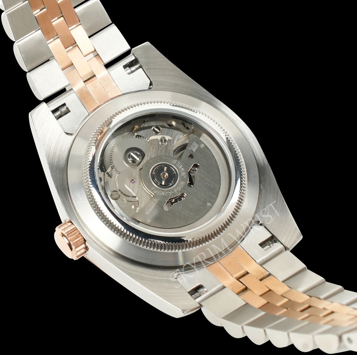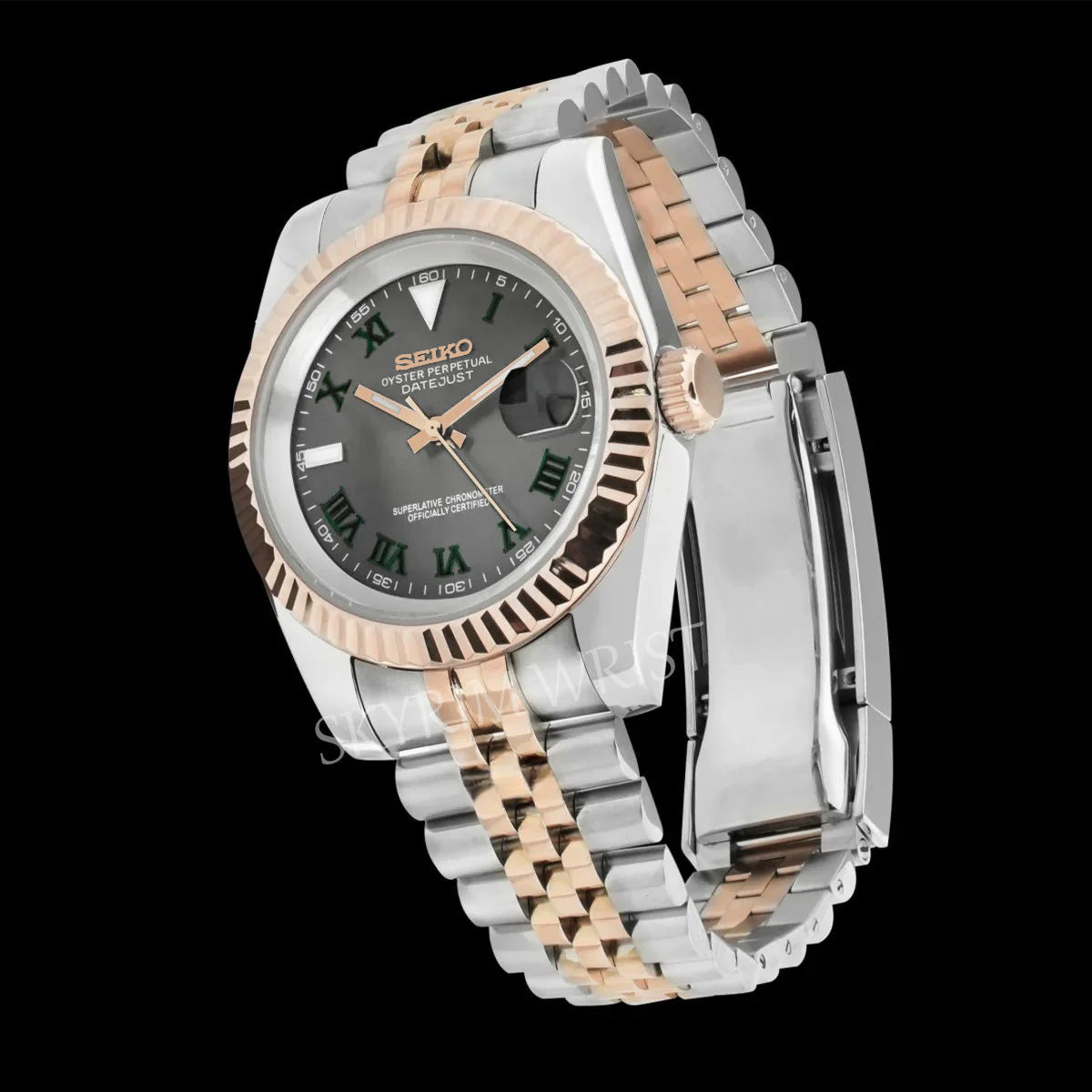 Classic form, modern craft — the Mod Datejust Reimagined captures the essence of timeless design, reshaped through the hands of modern artisans. Its 39 mm case, carved from 904L stainless steel, reflects light with quiet confidence, while the fluted bezel offers a refined nod to heritage without imitation.