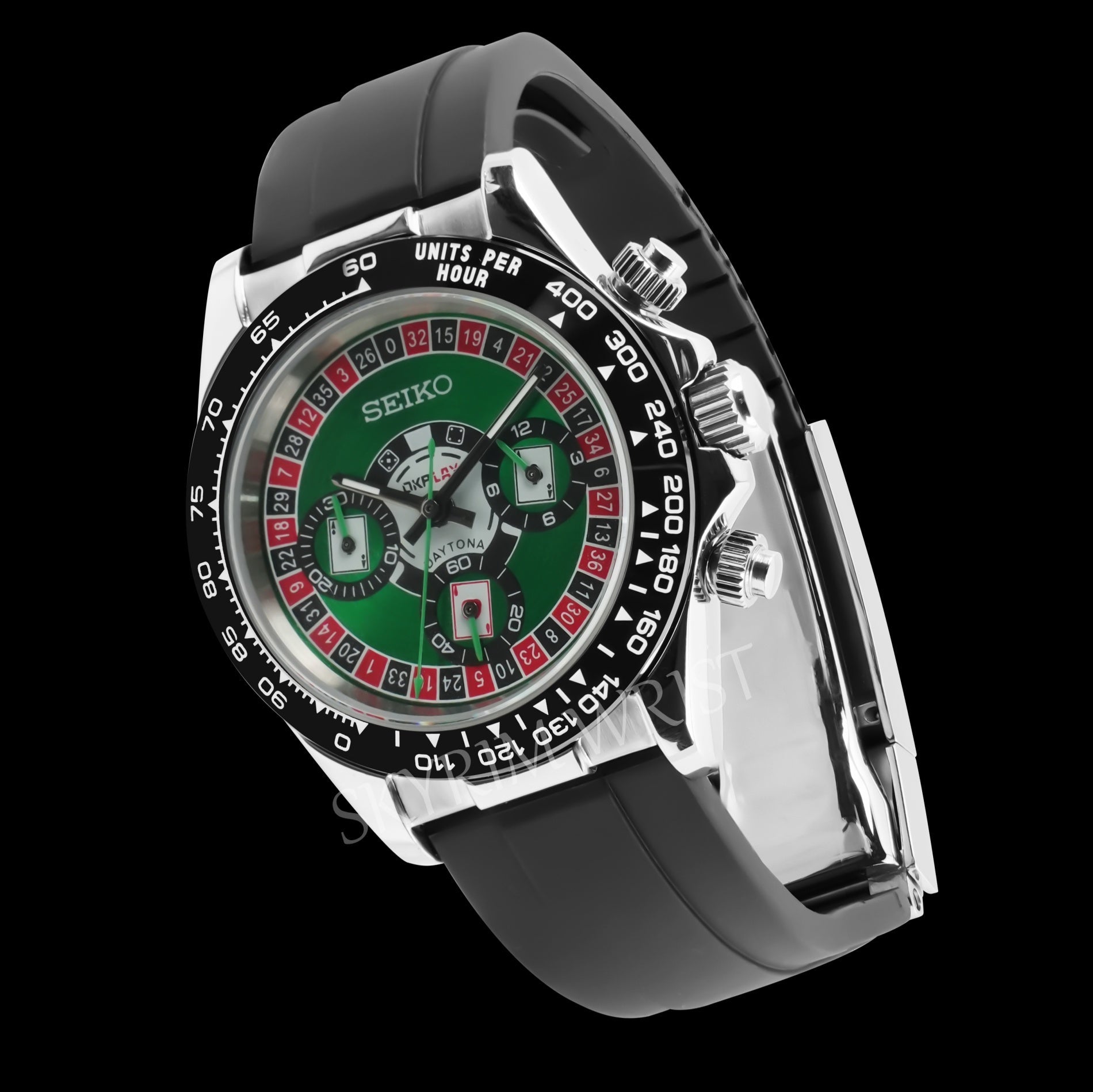 Inspired by the legendary chronograph design and reimagined through modern craftsmanship, the Mod Daytona – Rubber Edition captures performance, comfort, and precision in perfect balance. Its 40 mm 904L stainless-steel case is sculpted for durability and presence, while the rubber strap brings a contemporary, athletic touch — engineered for comfort and endurance.