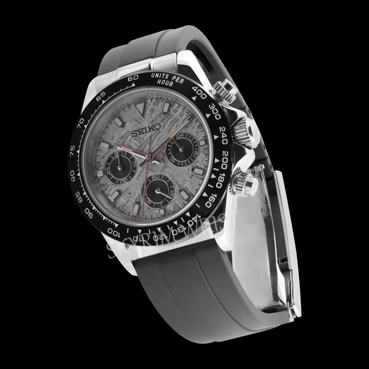 Inspired by the legendary chronograph design and reimagined through modern craftsmanship, the Mod Daytona – Rubber Edition captures performance, comfort, and precision in perfect balance. Its 40 mm 904L stainless-steel case is sculpted for durability and presence, while the rubber strap brings a contemporary, athletic touch — engineered for comfort and endurance.