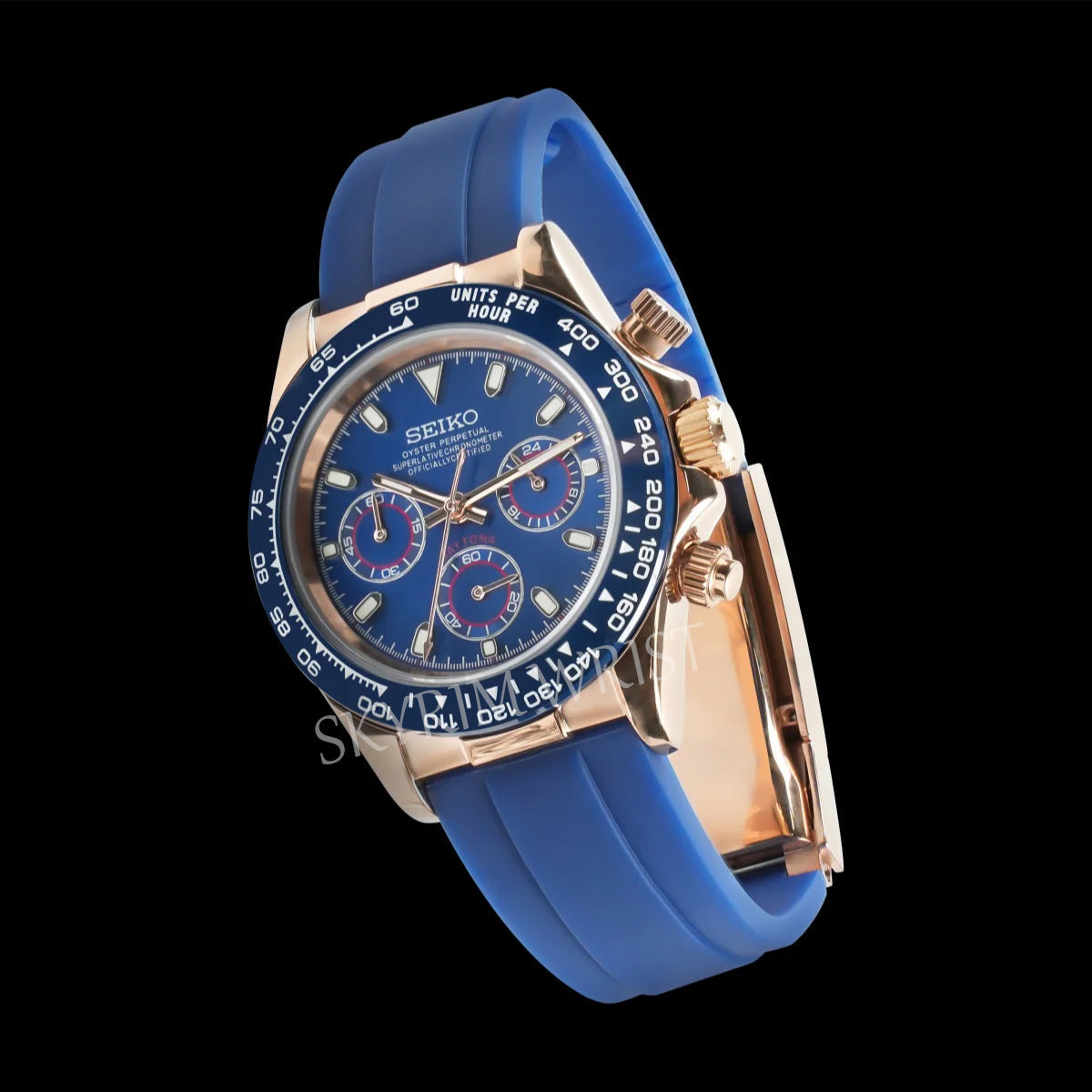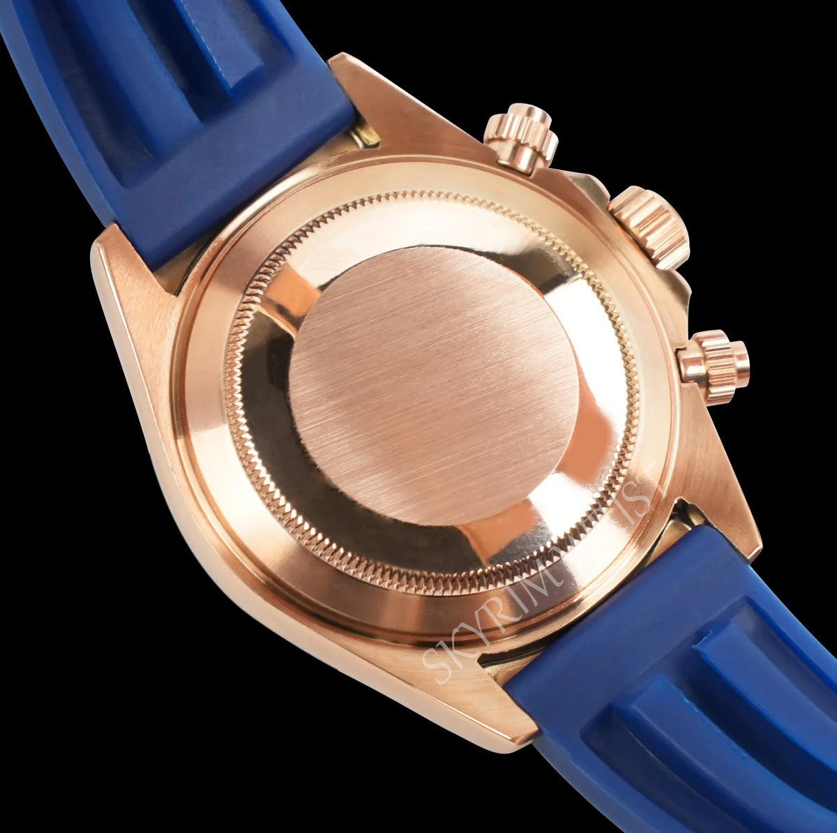 Inspired by the legendary chronograph design and reimagined through modern craftsmanship, the Mod Daytona – Rubber Edition captures performance, comfort, and precision in perfect balance. Its 40 mm 904L stainless-steel case is sculpted for durability and presence, while the rubber strap brings a contemporary, athletic touch — engineered for comfort and endurance.