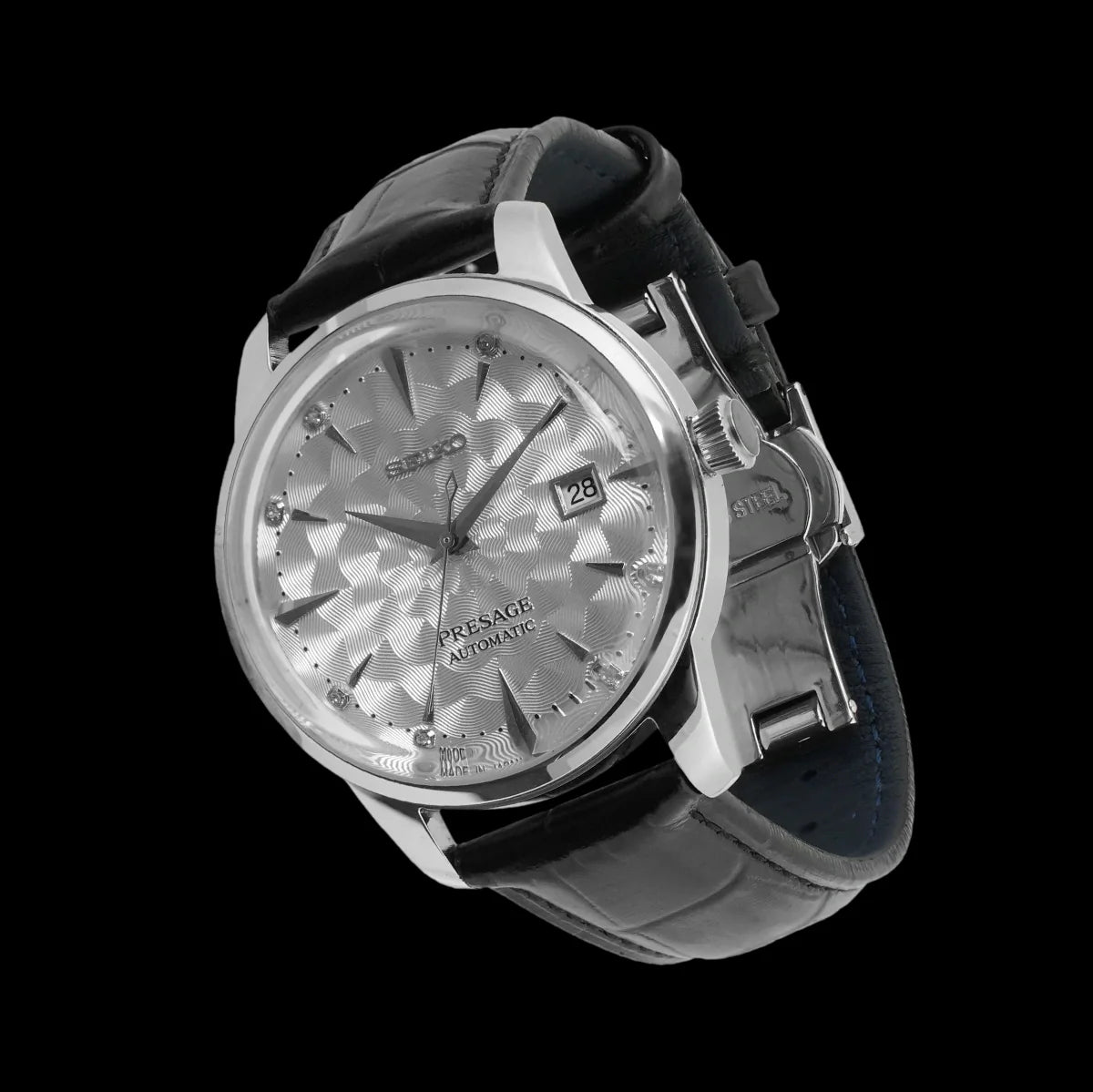 Refined, precise, and quietly confident — the Mod Grand Seiko captures the purity of mechanical timekeeping in its most elegant form. Inspired by the artistry of light and shadow, its 40.5 mm stainless-steel case reveals clean lines and flawless finishing, while the leather strap adds a touch of timeless sophistication.