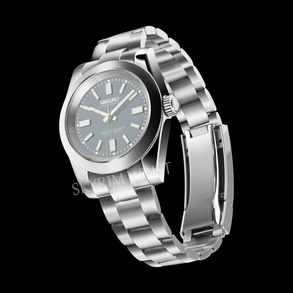 Hand-assembled from 904L stainless steel, its 39 mm case and Oyster-style bracelet form a seamless balance of strength and elegance. Inside beats the Seiko NH35 automatic movement, renowned for its accuracy and dependability — hackable, hand-windable, and built for lifelong precision.