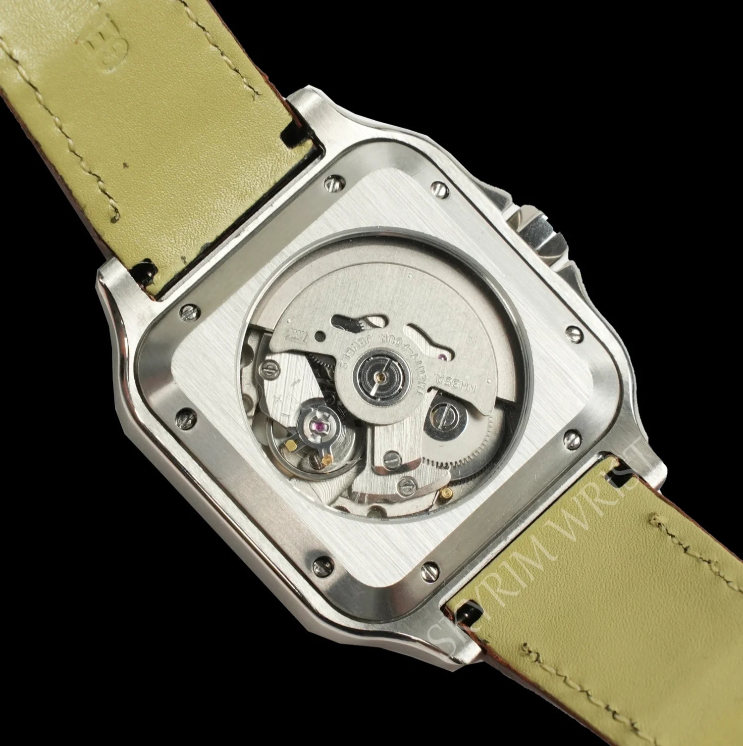 The Mod Santos Leather Edition pays homage to timeless design through craftsmanship that balances precision and warmth. Its square architecture — a symbol of strength and proportion — is softened by the tactile grace of genuine leather, creating a harmony of steel and tradition.
