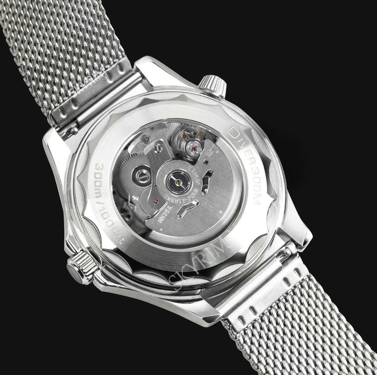 Crafted from 904L stainless steel, its 42 mm case and ceramic bezel embody endurance and refined detail. The mesh bracelet adds balance — lightweight, breathable, and timelessly elegant. Beneath the sapphire crystal, the Seiko NH35 automatic movement beats with quiet accuracy — hackable, hand-windable, and built for precision.