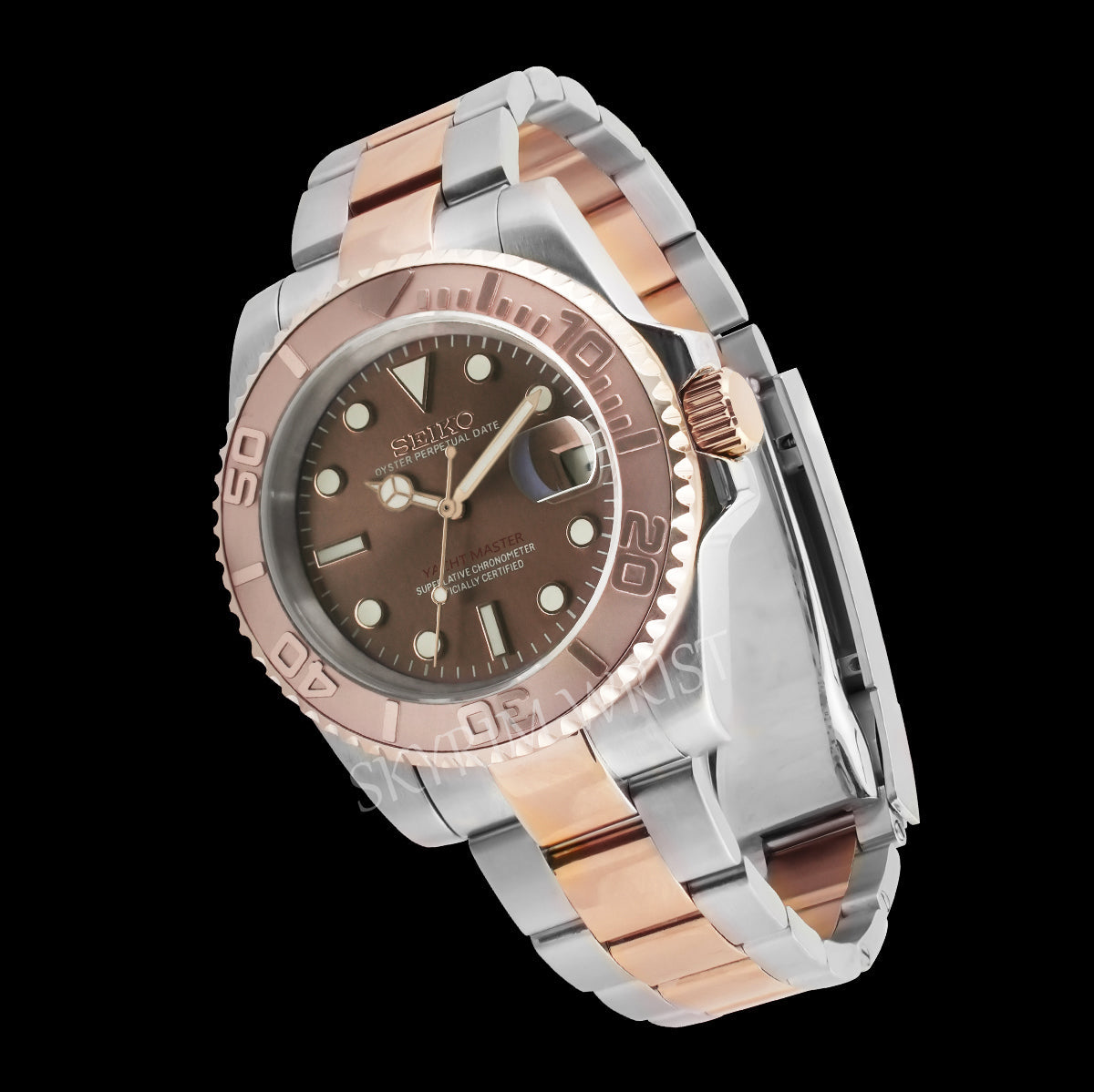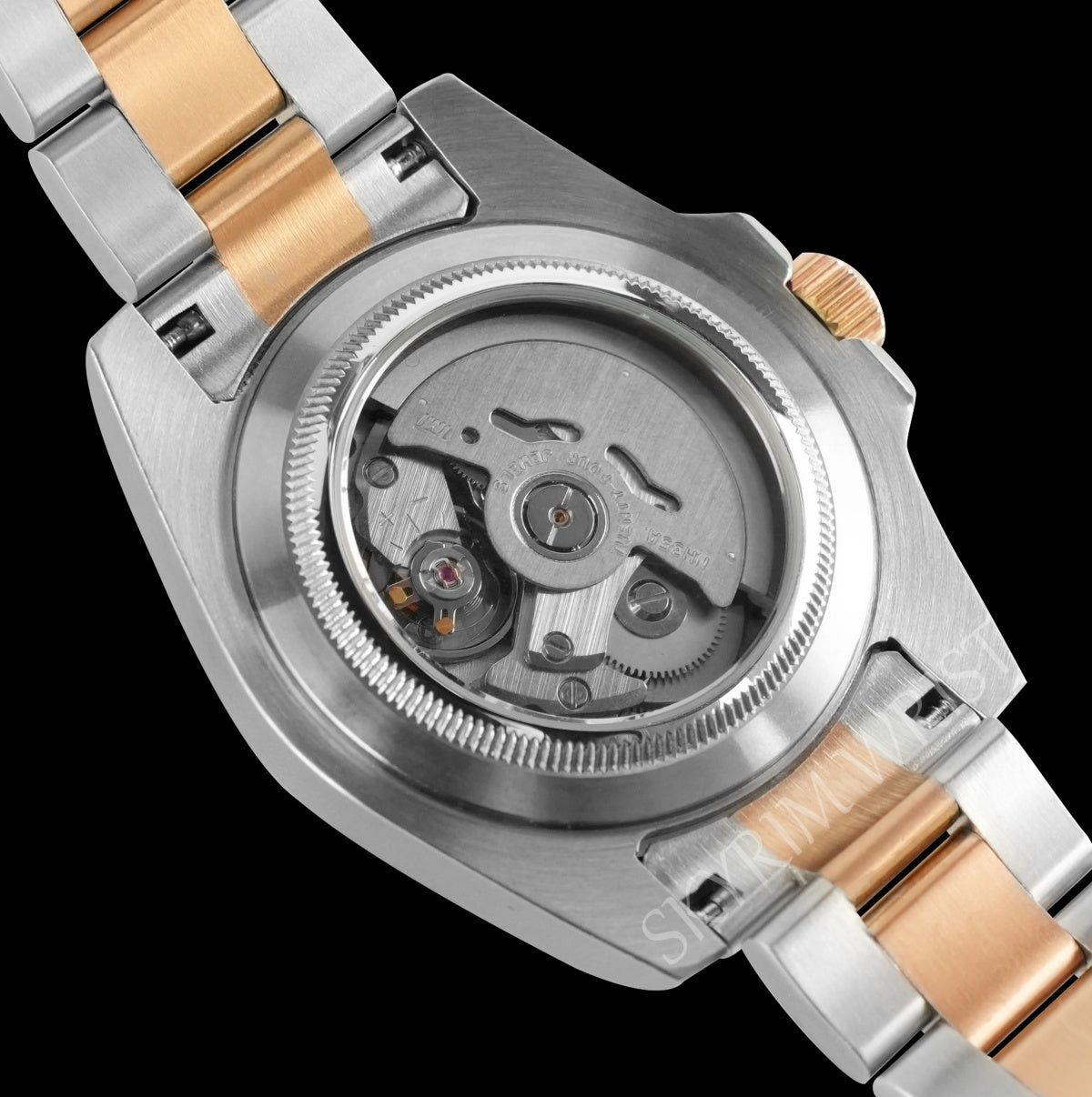 The 40 mm case, forged from 904L stainless steel, delivers a perfect balance of strength and polish. Its ceramic bezel stands resilient against the elements, while the sapphire crystal ensures lasting clarity. Beneath the surface beats the Seiko NH35 automatic movement, trusted for its precision and reliability.